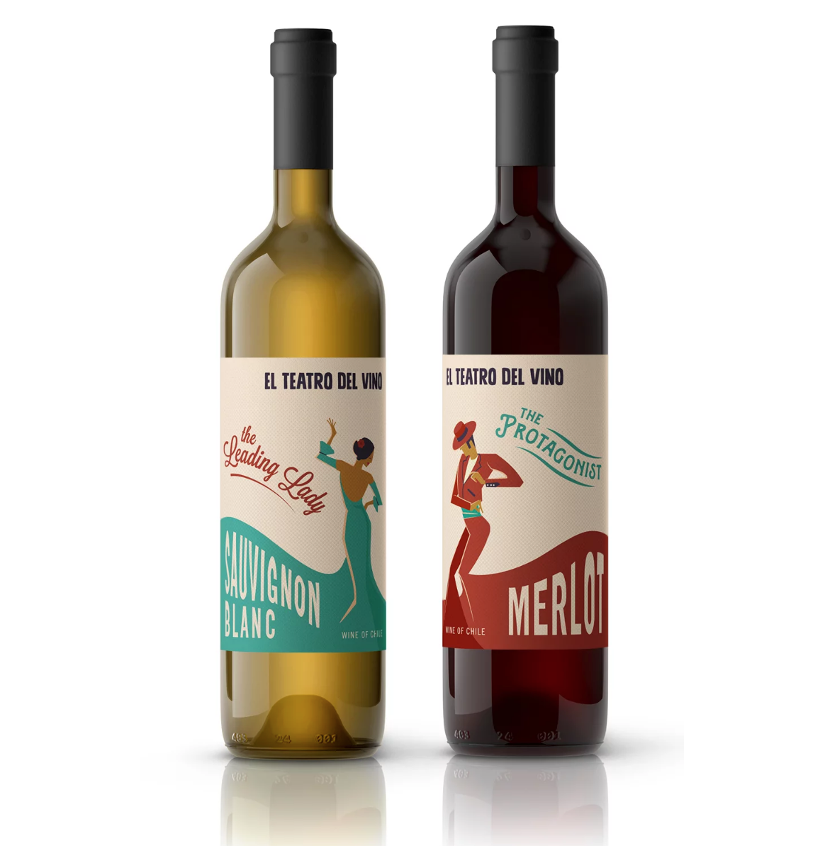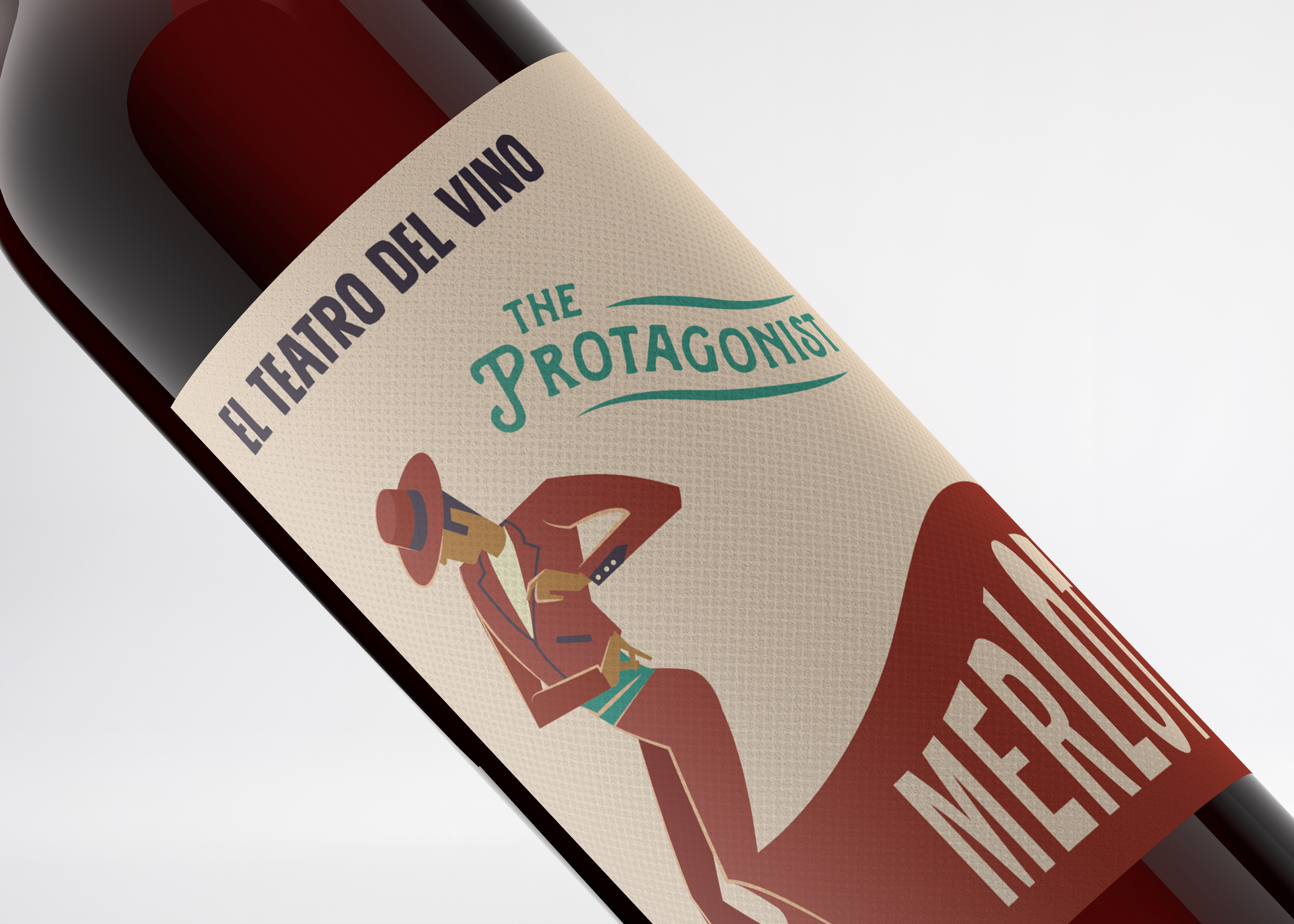 When I originally designed this the wines were named after Spanish male and female dancers but ended up being renamed to ‘The Leading Lady’ and ‘The Protagonist’ for trademark reasons. The client really liked the concept and it was still related to dancing and the stage, so it was adapted to the new name.